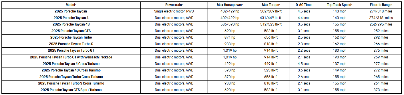 2025 Porsche Taycan Powertrains